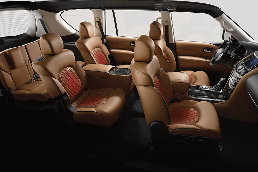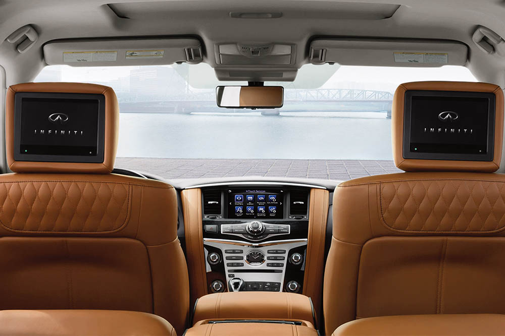 The interior feels like a modern interpretation of upscale luxury, with a spacious and luxurious premium cabin handcrafted in quality materials including perforated and quilted leather. Rear entertainment is more connected than ever, featuring larger high-resolution screens in the headrests and dedicated headphones, whilst ergonomic improvements give occupants more storage space, including a larger smartphone and tablet stowing area in the center console. INFINITI’s InTouch infotainment system has also been updated, allowing drivers to personalize driving characteristics and the cabin environment