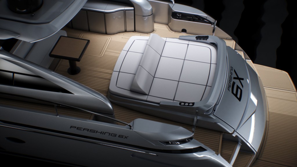 18.94 metres (about 62 ft) long and 4.80 metres (about 16 ft) wide, Pershing 6X is the result of collaboration between Ferretti Group’s Product Strategy Committee led by Mr. Piero Ferrari, the design firm headed by Fulvio De Simoni, and the Group’s Engineering Department.