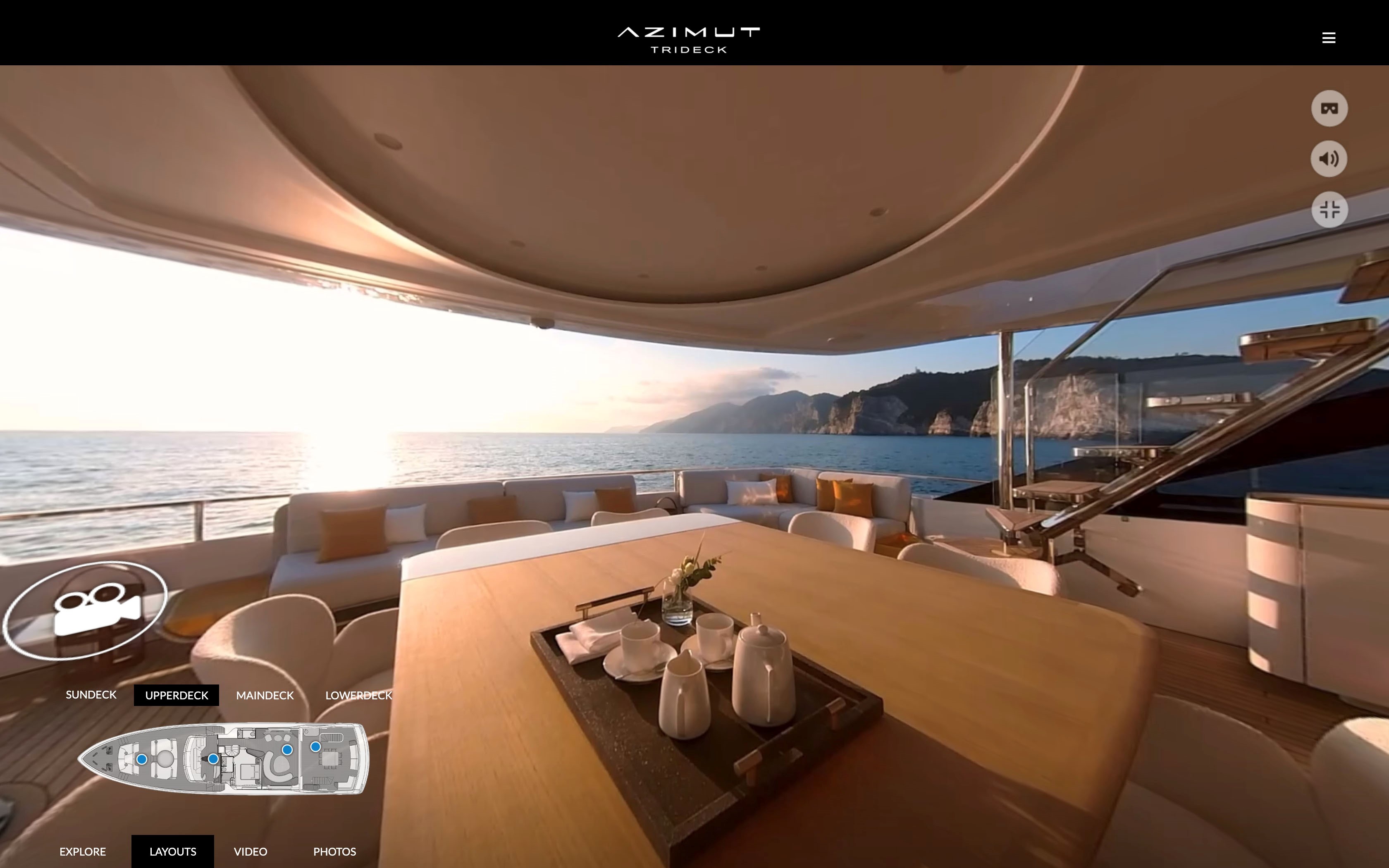 This immersive, dynamic tour of the yacht is also enhanced by a series of In-Depth Hotspots, which when clicked on play videos containing details about all the advanced technology on board.