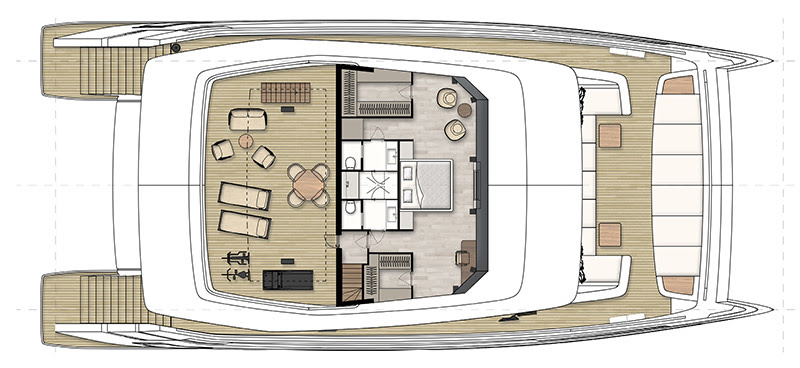 The sundeck can welcome an impressive master suite with panoramic views along with a large alfresco relaxation and fitness area.