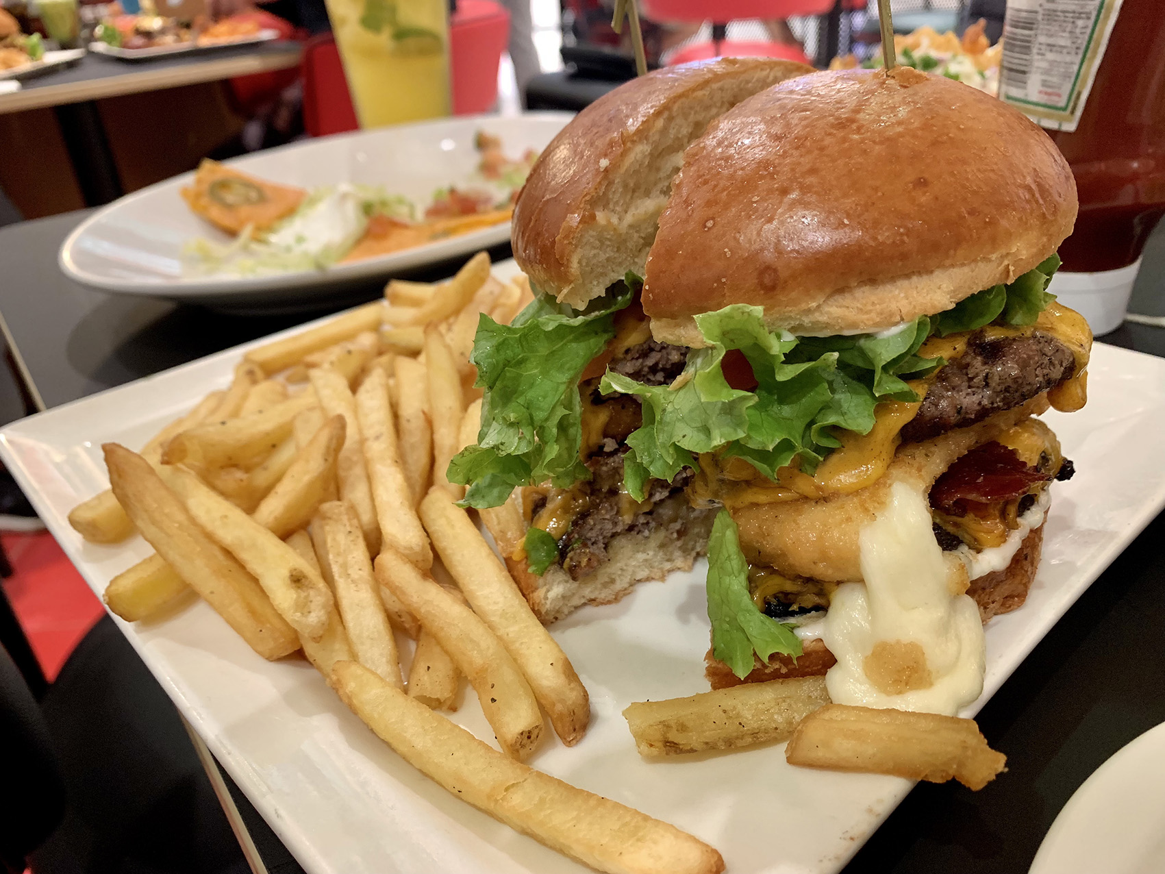 We decided to share some dishes and started our meal with classic cheese nachos and chopped salad. For main course, we shared a burger, a steak and crispy shrimps and despite being hungry, we still had plenty of food left. We highly recommend the sweet potato fries, mash potato or the corn on the cob as sides.