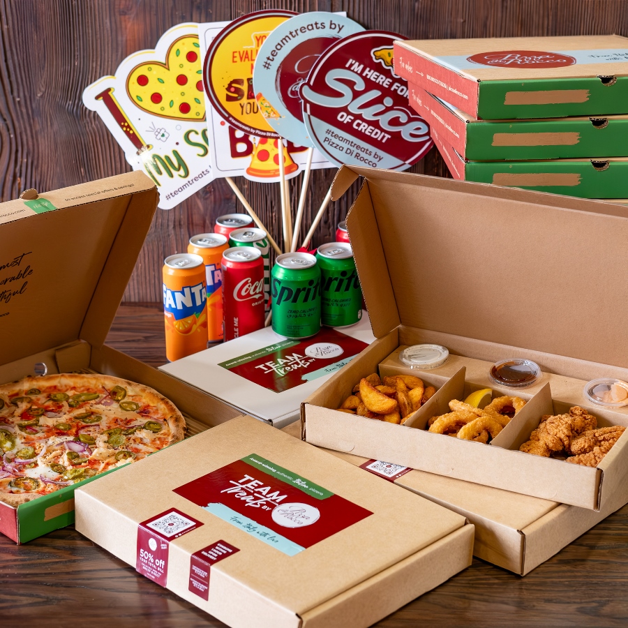 Team Treats offers three distinct packages: Squad for 10, Club for 20, and Pro for 30 team members, each comprising a delectable assortment of pizzas, side orders, dips, and beverages. Whether commemorating office achievements, birthdays, or simply bonding over shared accomplishments, Pizza Di Rocco invites teams to elevate their celebrations with their exclusive menu offerings.