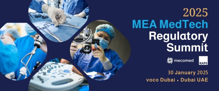 Mecomed and the Regulatory Affairs Professionals Society (RAPS) have come together for the first time to produce the 2025 MEA MedTech Regulatory Summit, convening 30 January 2025 at the voco Dubai in Dubai, UAE. This one-day, interactive summit unites leaders from regulatory agencies, industry, and other key stakeholder groups for focused discussion and exchange on the most-pressing issues and challenges impacting the region.